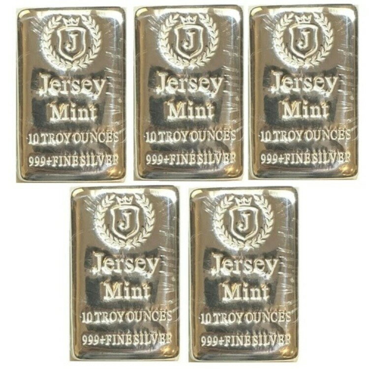 5個セット - ジャージーミント 10オンス 0.999 シルバー鋳造バー - 合計50オンス - 在庫あり