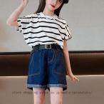 セットアップ 上下セット 子供服 キッズ ジュニア 女の子 半袖 カットソー ショートパンツ デニムパンツ 女の子 短パン キュロット おしゃれ 可愛い 女子 女児