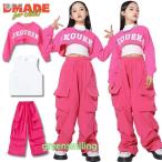 キッズダンス衣装 セットアップ ピンク トップス へそ出し タンクトップ 白 カーゴパンツ ヒップホップ 衣装 ジュニア 女の子 キッズ ダンス 衣装 派手 長袖 ロ