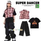 キッズダンス衣装 セットアップ 黒 ヒップホップ 衣装 ダンス衣装 キッズ 男の子 ガールズ チェック柄 ベスト カーゴパンツ K-POP 韓国