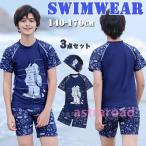 ジュニア水着 男の子 セパレート水着 キッズ スクール水着 キャップ付き 3点セット 半袖 子供水着 ショートパンツ ダイビング ビーチ 学生用 授業 学校プール 海