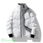 ダウンジャケット メンズ 白 おしゃれ キルティングコート 立ち襟 切り替え 千鳥格子 軽量 暖かい 防寒着 アウトドア カジュアル 冬