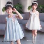 子供服 ワンピース 花柄 女の子 半袖 ジュニア ドレス チュール 刺繍 夏 可愛い 日常 発表会 キッズ