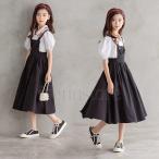 子供服 女の子 ワンピース ジャンパースカート 半袖 ブラウス レース刺繍 春夏 Aライン ノースリーブ 韓国子ども服 ジュニア 卒園式 入学式