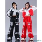 ヒップホップ 衣装 キッズダンス衣装 セットアップ 韓国 子供ダンス服 派手 白 黒 赤 K-POP hiphop 長袖Tシャツ スウェットパンツ