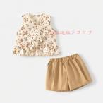 上下セット ノースリーブ ショートパンツ セットアップ ノースリーブ ホットパンツ 短パン ショーパン 子供用 トップス ボトムス 夏 ウエストゴム 花 フラワー