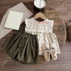 セットアップ 上下 2点セット キッズ 子供用 女の子 トップス ボトムス ノースリーブ 袖なし ノースリーブ ショートパンツ ズボン ウエストゴム 花柄 ベビー