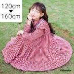 ワンピース 長袖 ギンガムチェック 肩フリル ギャザースカート ティアードスカート 襟付き レース 可愛い 女の子 女児 キッズ ジュニア