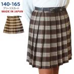 日本製プリーツスカート ウエストゴム ベルト付 ブラウン 格子 女の子 子供服 140 150 80000a-br