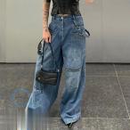 ワイドパンツ ダンス衣装 レディース デニムパンツ ストレート HIPHOP ヒップホップ ジュニア カレッジ風 オシャレ かっこいい 個性的 服 原宿系 演出服
