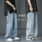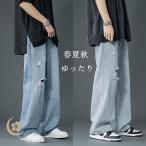 デニムパンツ メンズ ワイドパンツ ダメージデニム 太め ゆったり デニム ダメージデニム パンツ ジュニア 韓国風 春夏秋