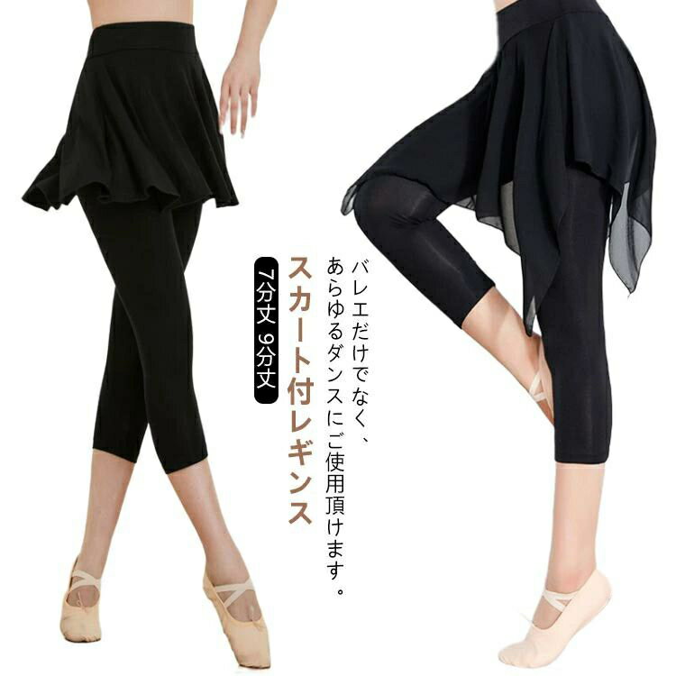 バレエ スパッツ付きスカート スカート付きスパッツ 大人 ジュニア 女子 パンツ ボトムス ストレッチ スパッツ付き 伸縮性 透けない 7分丈 9分丈 ブラック 体型カバー 練習着 レッスン バレエ用品