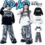 グレー タイダイ クロップドベスト カーゴパンツ ズボン 女の子 ダンスウェア 男の子 ダンス衣装 黒 白 長袖 ロングT ブラック ホワイト バンダナ ジュニア hip
