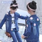 子供服 2点セットデニムジャケット+ジーンズ 女の子 キッズ 花柄刺繍 デニム Gジャン 長ズボン ゆったり 春秋 ファッション感 学生服 ジュニア