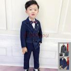 2色 フォーマルスーツ 男の子 スーツ キッズ 子供 タキシード 3点セット ベスト 上下セット 無地 ジュニア 入学式 卒業式 発表会 七五三