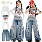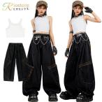 デニム キッズ 女の子 ダンス衣装 デニムパンツ 長ズボン 長袖 セットアップ ガールズ ストリート系 ジャズ 日常着 ジュニア 可愛い jazz K-POP オシャレ 練習着