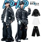 黒系 英字 総柄 シャツ 女の子 男の子 子供服 ダンスウェア ダンス衣装 ブラック ダメージ デニムパンツ ズボン ホワイト 長袖インナー 応援団 発表会 ジュニア