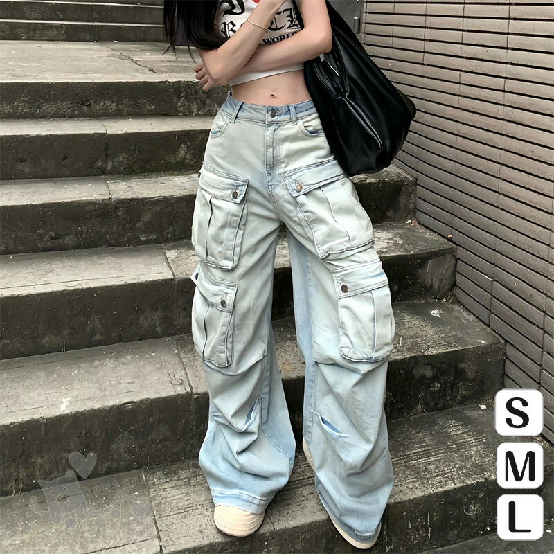 ワイドパンツ ダンス衣装 レディース デニムパンツ カーゴ ストレート HIPHOP ヒップホップ 個性的 服 原宿系 ジュニア カレッジ風 オシャレ かっこいい 個性的 服 原宿系 演出服 送料無料