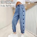 デニムパンツ ロングパンツ キッズ ジュニア 子供 女の子 ガールズ ボトムス ジーンズ 長ズボン ウエストゴム ハート 110 120 130 14