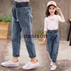 ジーンズ キッズ ロングパンツ ダメージ加工 ボトムス デニムパンツ 女の子 カジュアル 長ズボン ウエストゴム パンツ ゆったり ジュニア 子ども110-160