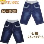 男の子 七福 ストレッチ デニム ハーフパンツ 140cm 150cm 160cm ブルー ネイビー 14524