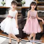 子供服 ワンピース 花柄 刺繍 夏 可愛い 日常 発表会 キッズ 女の子 半袖 ジュニア ドレス チュール