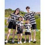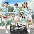 親子ペアルック親子服レディース メンズ親子コーデ親子ペア 2点セット夏 半袖トップス上下セットTシャツ ショートパンツ 子供服ママと娘 父と息子ボーダー柄ス