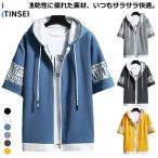 パーカー フード付き 半袖ジャージ 夏 ジップアップ ジップアップ 半袖パーカー 前開き 切り替え ジュニア メンズ パーカー 中学生 高校生 ジップ