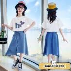 子供服 セットアップ キッズ 女の子 春夏 トップス 半袖 ブラウス tシャツ スカート ロング丈 サロペット 韓国子ども服 ジュニア ベビー服 おしゃれ 可愛い 新作
