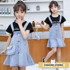 子供 ブラウス 半袖 ジャンパースカート 2点セット 女の子 サロペット 夏 半袖ブラウス ガールズ カジュアルシャツ オーバーオール ジュニア シャツ