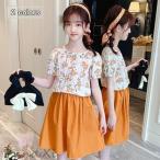 子ども 半袖ブラウス 夏 花柄 女の子 スカート 上下セット 2点 ブラウス Aラインスカート キッズ 女児 花柄ブラウス レトロ セットアップ ジュニア