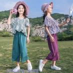子供服 セットアップ キッズ 女の子 夏 2点セット 上下セット Tシャツ ブラウス 半袖 花柄 ガウチョパンツ ジュニア おしゃれ 可愛い カジュアル 小学生 新品
