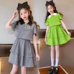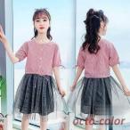 子供服 セットアップ キッズ 女の子 半袖 上下セット 韓国子供服 ジュニア ブラウス スカート 膝丈 カジュアル 可愛い おしゃれ 小学生 通学着