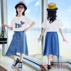 子供服 セットアップ キッズ 女の子 春夏 トップス 半袖 ブラウス tシャツ スカート ロング丈 サロペット 韓国子ども服 ジュニア ベビー服 おしゃれ 可愛い 新作