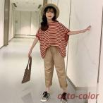 子供服 セットアップ キッズ 女の子 春夏 トップス 半袖 ブラウス tシャツ ロングパンツ 韓国子ども服 ジュニア 大きいサイズ ボーダー柄 おしゃれ 可愛い