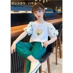 子供服 セットアップ キッズ 女の子 夏 ブラウス tシャツ 半袖 ロングパンツ 長ズボン ジュニア ベビー服 トップス 学生 薄手 涼しい