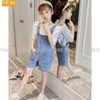 子供服 セットアップ キッズ 女の子 夏服 トップス ブラウス 半袖 シャツ デニムパンツ ハーフパンツ サロペット 韓国子ども服 ジュニア おしゃれ 可愛い 新品
