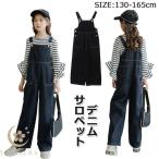 サロペットデニム キッズ デニムオーバーオール デニムパンツ サロペット サロペットデニム ロング丈 子供 ワイドパンツ デニム デニムパンツ 子供服 女の子