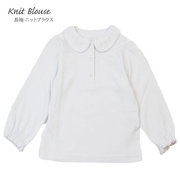 ニットブラウス キッズ 長袖 丸襟 ブラウス フラワー 刺繍 ホワイト 白 スクール 制服 通園 通学 キッズ ジュニア 女の子 小花柄 100cm 110cm 120cm 130cm 743010 お受験 通塾 小学校制服 発表会 コンクール 冠婚葬祭