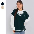 プルオーバー 女の子 キッズ ガールズ 子供 トップス キッズプルオーバー ジュニア ライン入り Vネックベストレイヤード風 おしゃれ シンプル パペルラピス