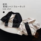 長袖シャツ キッズ カットソー 配色 クルーネック 通気性 柔らかい ゆったり シンプル 春秋 通園 通学 ユニセックス 子供服
