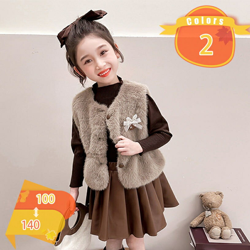 キッズ ニットセーター レザースカート 上下セット 子供服 女の子 ニット トップス フレアスカート セットアップ プルオーバー ファーベスト 長袖 ガールズ スカート スーツ 冬服 可愛い 通学 普段着 洋服 ジュニア服 秋冬 fascimo