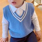 春秋冬 ニットベスト キッズニットベスト ジュニア 子供用セーター カジュアル Vネック 洗える 男の子 防寒 インナー ニットチョッキ