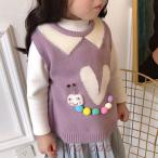 春秋冬 ニットベスト キッズニットベスト ジュニア 子供用セーター カジュアル 洗える 女の子 防寒 インナー ニットチョッキ