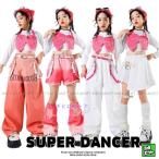 ダンス衣装 セットアップ 白 ピンク ガールズ ヒップホップ 衣装 派手 K-POP 韓国 ダンスウェア 子供ダンス服 キッズダンス衣装 リボンビスチェ