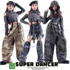 ヒップホップ ダンス衣装 ガールズ K-POP 韓国 セットアップ 派手 肩穴あきトップス デニムパンツ グレー ベージュ カモフラージュ