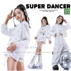 ダンス衣装 白 ガールズ ヒップホップ 衣装 K-POP 韓国 ジャズ セットアップ へそ出し オフショル 肩出しトップス パンツ 子供ダンス服 ダンスウェア