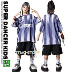 キッズダンス衣装 ヒップホップ 衣装 セットアップ ストライプTシャツ ハーフパンツ キッズ ダンス衣装 男の子 ガールズ 柄シャツ 派手 K-POP 韓国 紫 黒