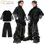 キッズ ダンス衣装 セットアップ ボーダー柄 ヒップホップ 黒 HIPHOP キッズダンス 長袖 シャツ デニムパンツ ダメージ デニム ワイドパンツ 派手 ジュニア 男女