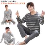 ルームウェア ボーダー柄 メンズ ロングパンツ 薄手 長袖 上下セット ルームウェア 寝間着 パジャマ お洒落 Tシャツ 部屋着 ジュニア 薄手 リラ